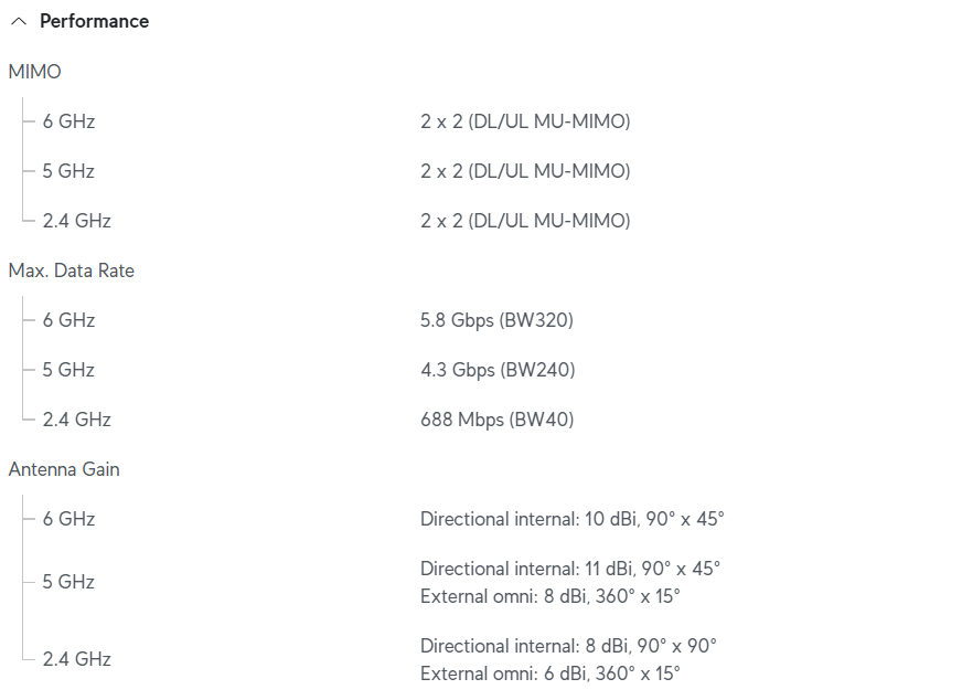 - Access Point Ubiquiti 2,4/5/6GHz 2x2x2 10Gbps 1-2500 WiFi7 8/11/10dBi IP67 req-PoE+