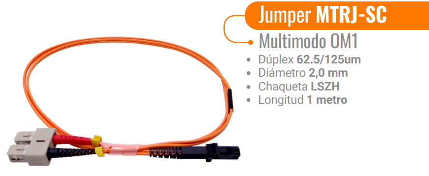 - Cable Jumper de Fibra Óptica Multimodo OM1 MTRJ-SC Duplex 1m 62.5/125µm LSZH
