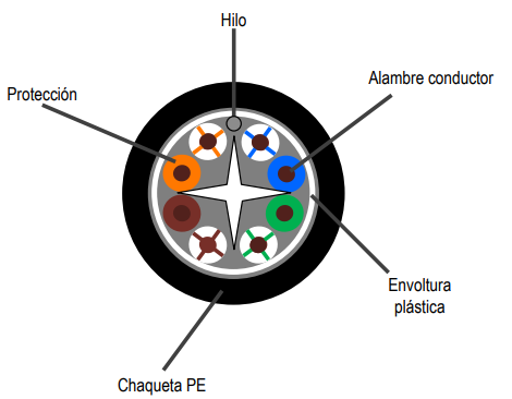 Conductor: Cable de cobre sólido (1 x AWG24)