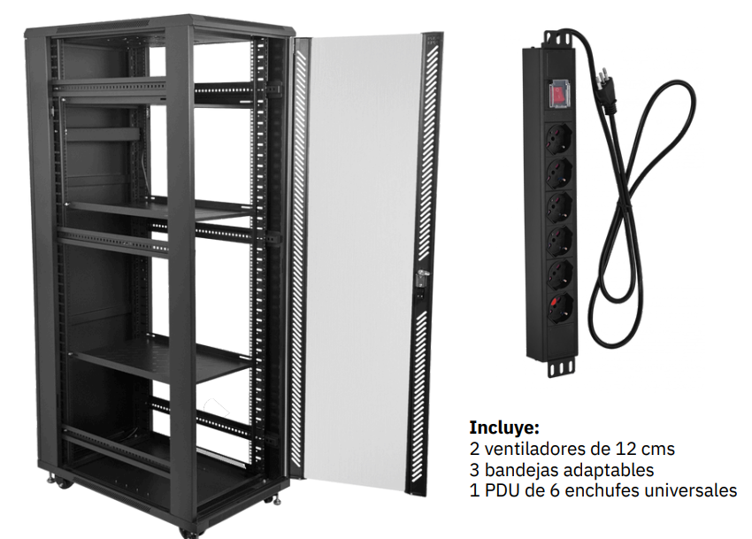 - Accesorios incluidos: Incluye bandejas, permitiendo la instalación inmediata de equipos.