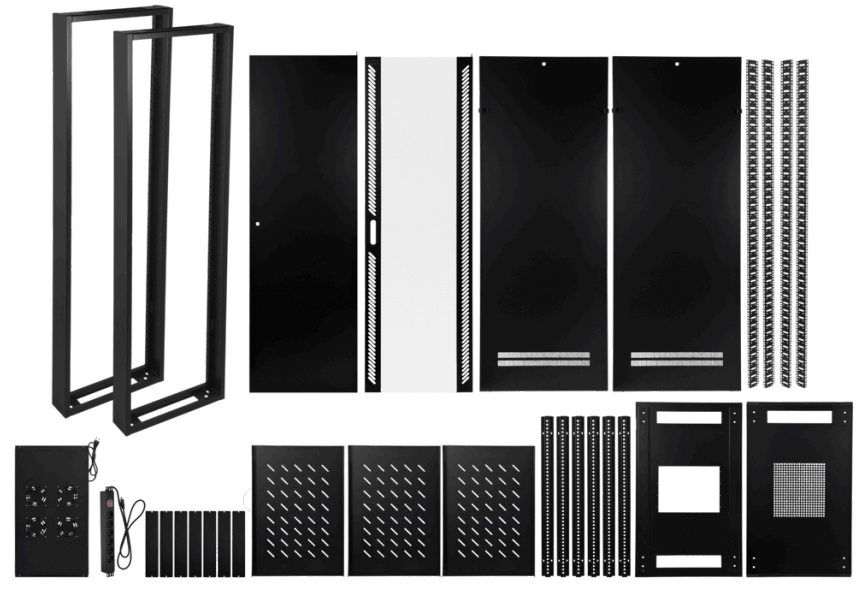 Gabinete Rack LINKMADE RK42-10VLD 42U 100cm de Fondo Desarmado con PDU, Ventilador y Bandejas - Negro