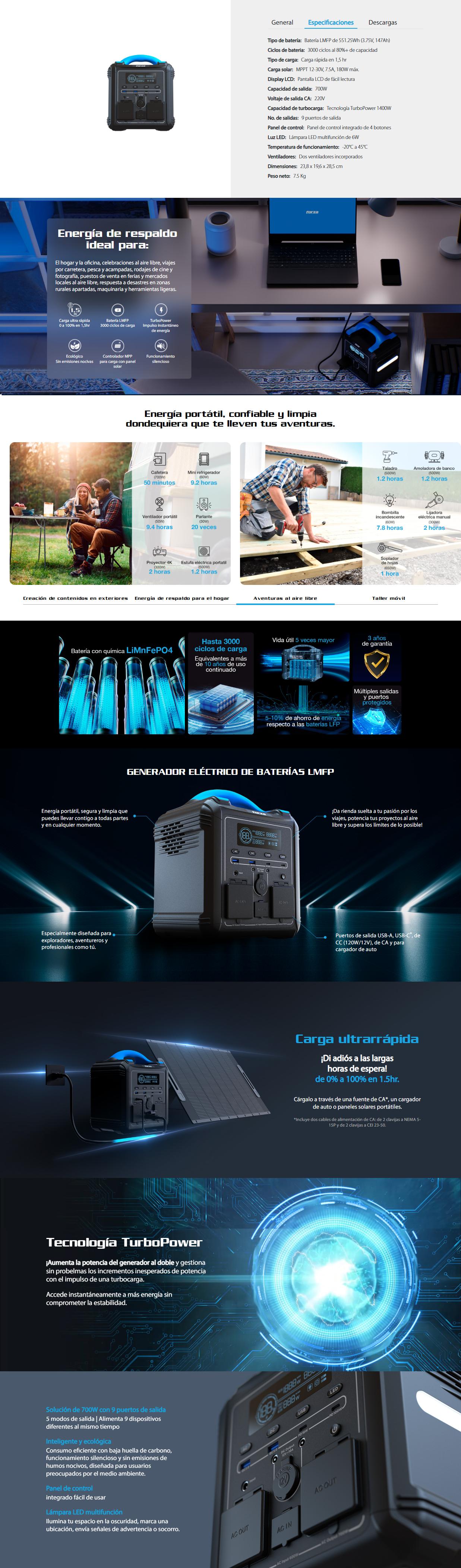 - Capacidad de turbocarga: Tecnología TurboPower 1400W