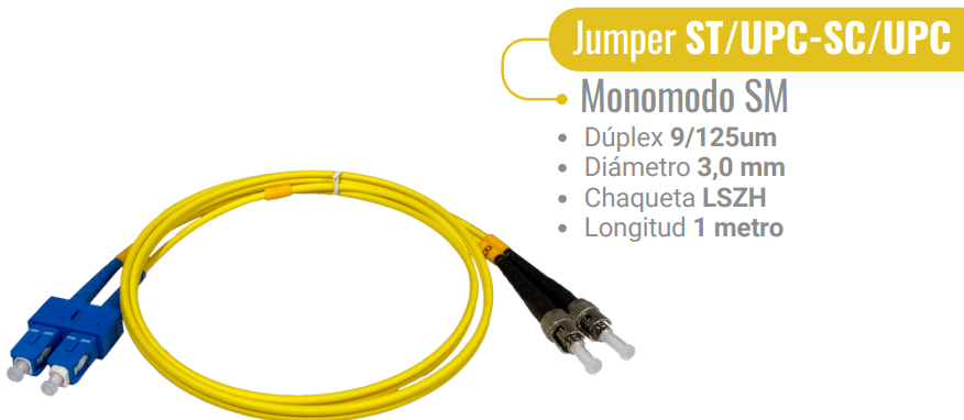 - Jumper Cable Fibra 1mt ST/UPC-SC/UPC MonoModo SM Duplex 9/125um 3mm