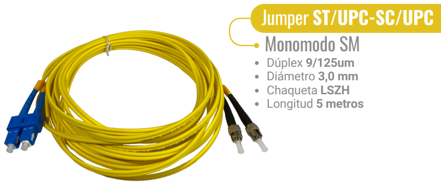 - Jumper Cable Fibra 5mt ST/UPC-SC/UPC MonoModo SM Duplex 9/125um 3mm