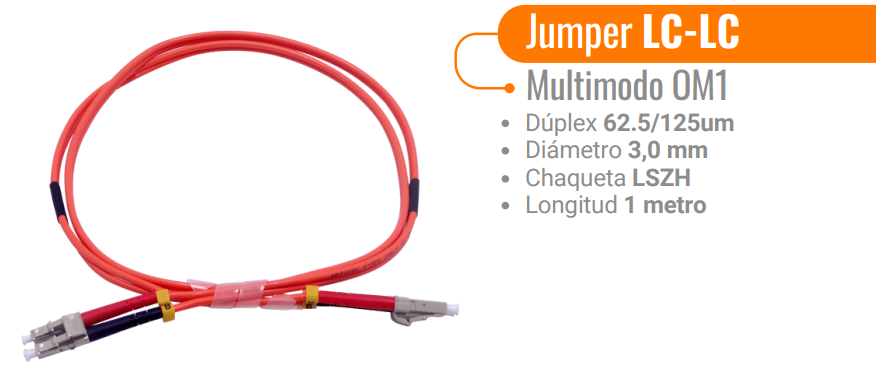 - Jumper Fibra 1mt LC-LC OM1 MultiModo MM Duplex 62.5/125um 3mm LSZH