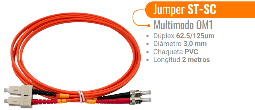 - Jumper Fibra 2mt ST-SC OM1 MultiModo MM Duplex 62.5/125um LSZH
