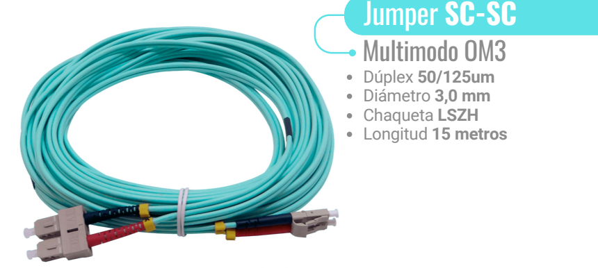 - Jumper Fibra Optica 15mt SC-SC OM3 MultiModo MM Duplex 3.0mm 50/125um LSZH