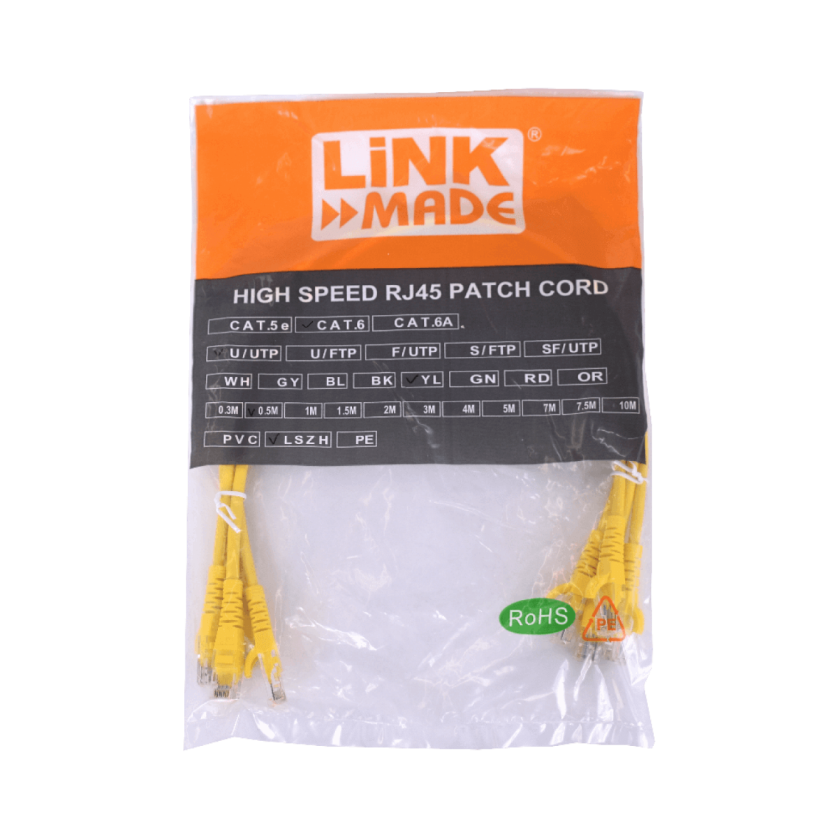 Pack x4 Cable Patch LINKMADE Cat6 0.5mt Amarillo LSZH Inyectado