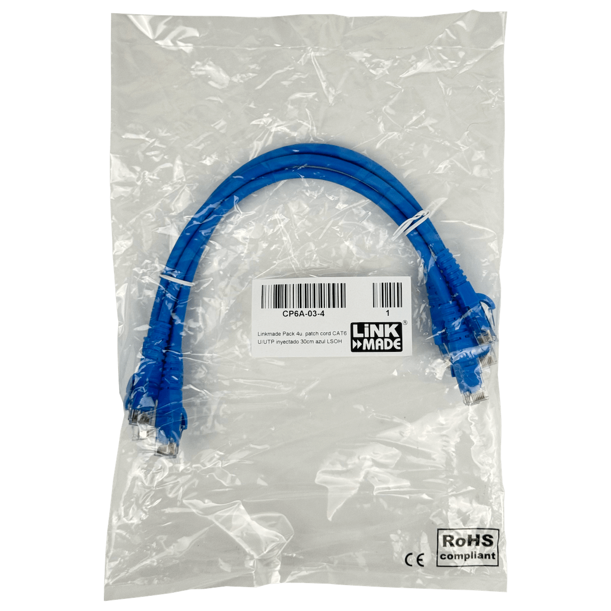 - Pack x4 Cable Patch LINKMADE Cat6 Azul 30cm LSZH Inyectado Multifilar