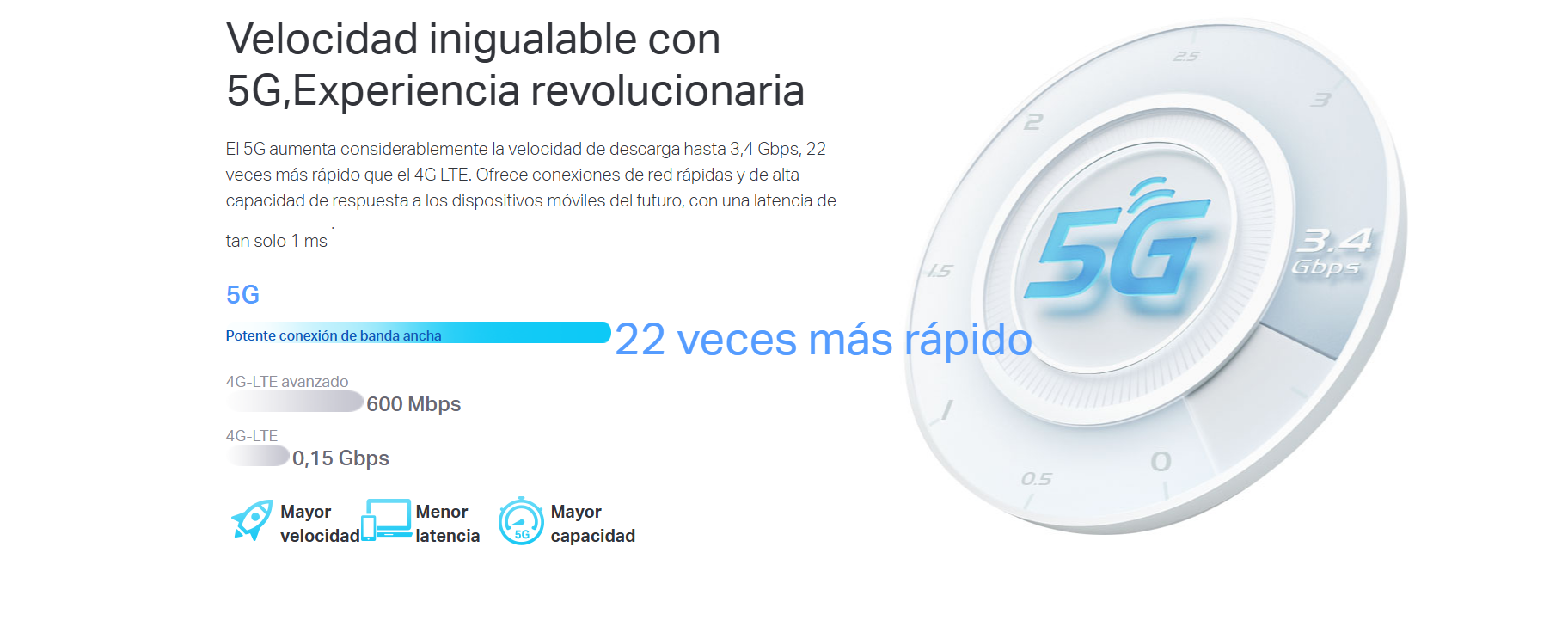 - Aumenta tu velocidad 5G: Aprovecha tu red 5G avanzada con velocidades de descarga de hasta 3.4 Gbps. Comparte tu red 5G con múltiples dispositivos Wi-Fi y disfruta de películas en Ultra HD sin interrupciones, descargas de archivos ultrarrápidas y videochats y videoconferencias fluidas.