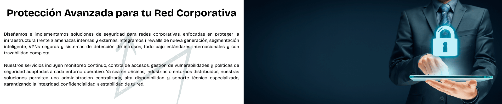 Implementamos firewalls, segmentación inteligente y monitoreo continuo para blindar tu infraestructura frente a amenazas internas y externas.