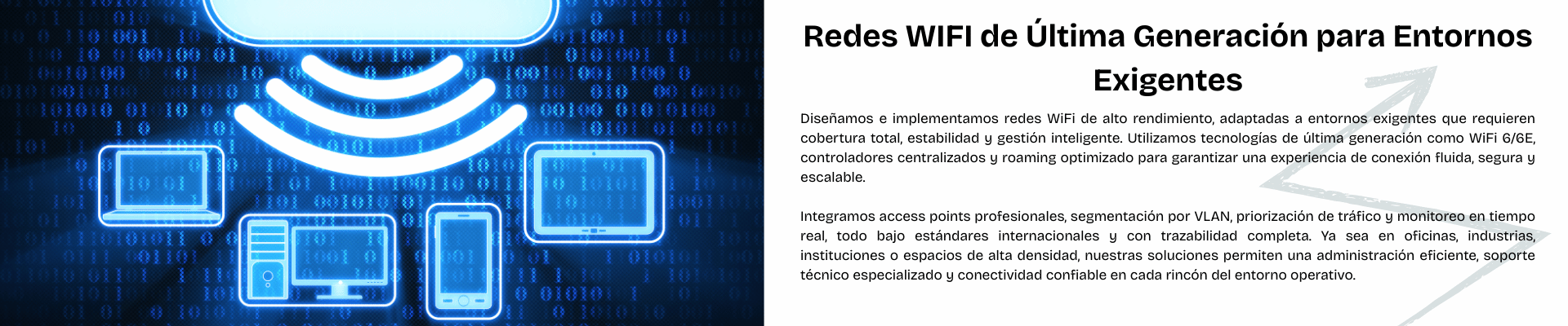 Diseñamos e instalamos soluciones WiFi de alto rendimiento con cobertura inteligente, roaming optimizado y gestión centralizada, ideales para oficinas, industrias y espacios de alta densidad.