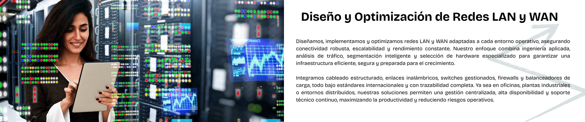 Implementamos soluciones de conectividad LAN y WAN eficientes, seguras y adaptadas a cada entorno operativo.