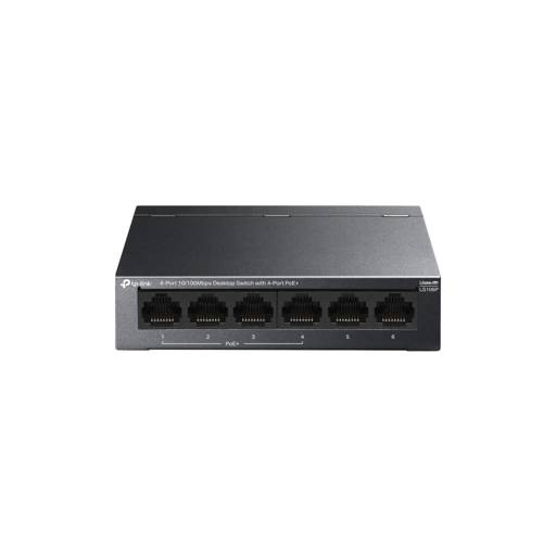 - Switch TP-Link LS106P de 6 puertos 10/100 Mbps con 4 puertos PoE+